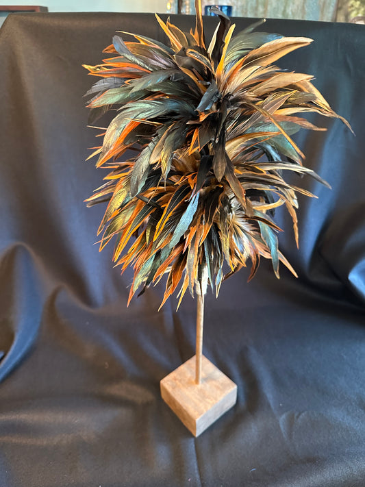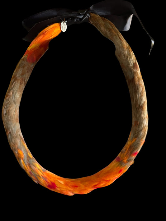 Asymmetric crocodile green with chinchilla rooster lei hulu (feather lei)