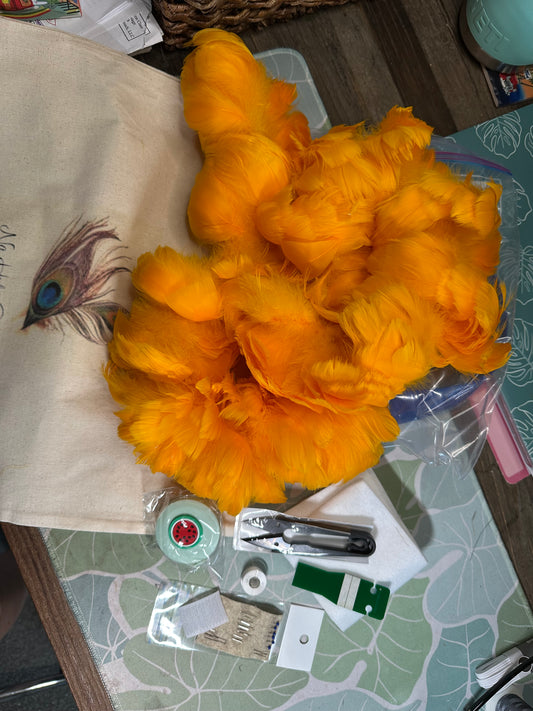 Custom-dyed Yellow & Orange Goose Coquille Feathers