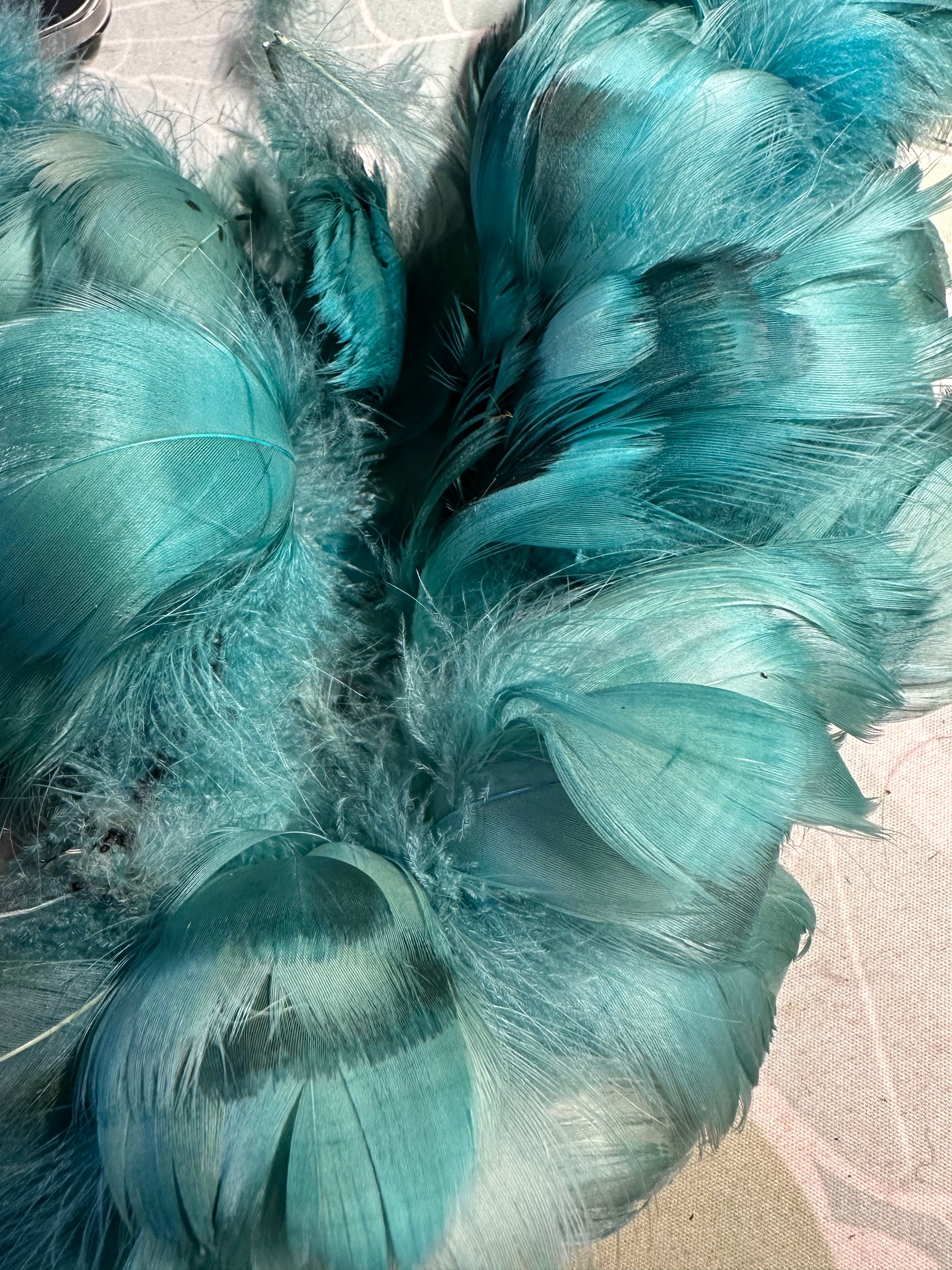 various shades of blues and purples 3-4" goose coquille feathers. Already prepped and ready to use. Please note the photos do not capture the colors exactly. For instance most are lighter in color.