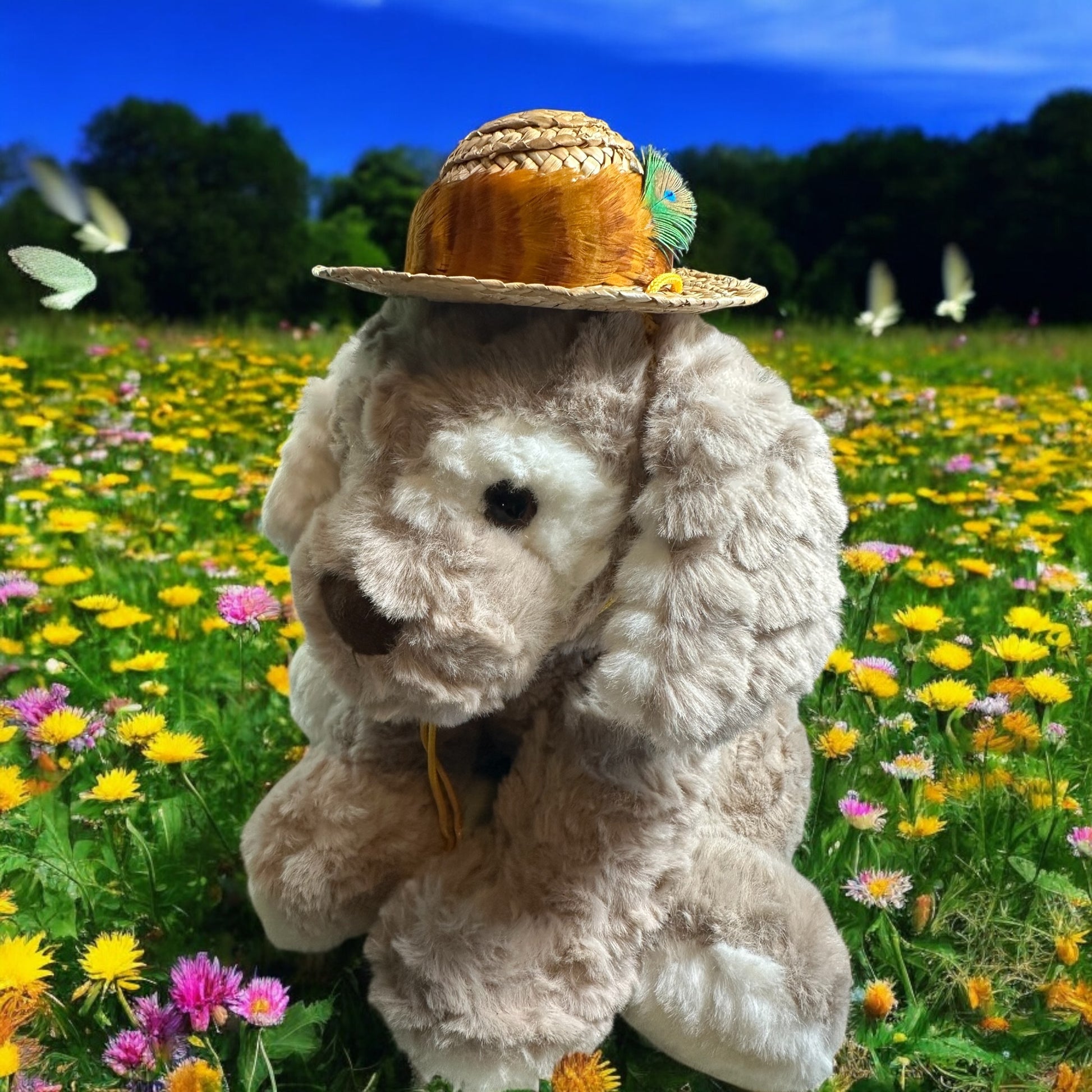 Custom made humu papale made with various colored goose with peacock eye accent on left side. Size small, medium and large. For the pup or kitty that doesn't mind dressing up